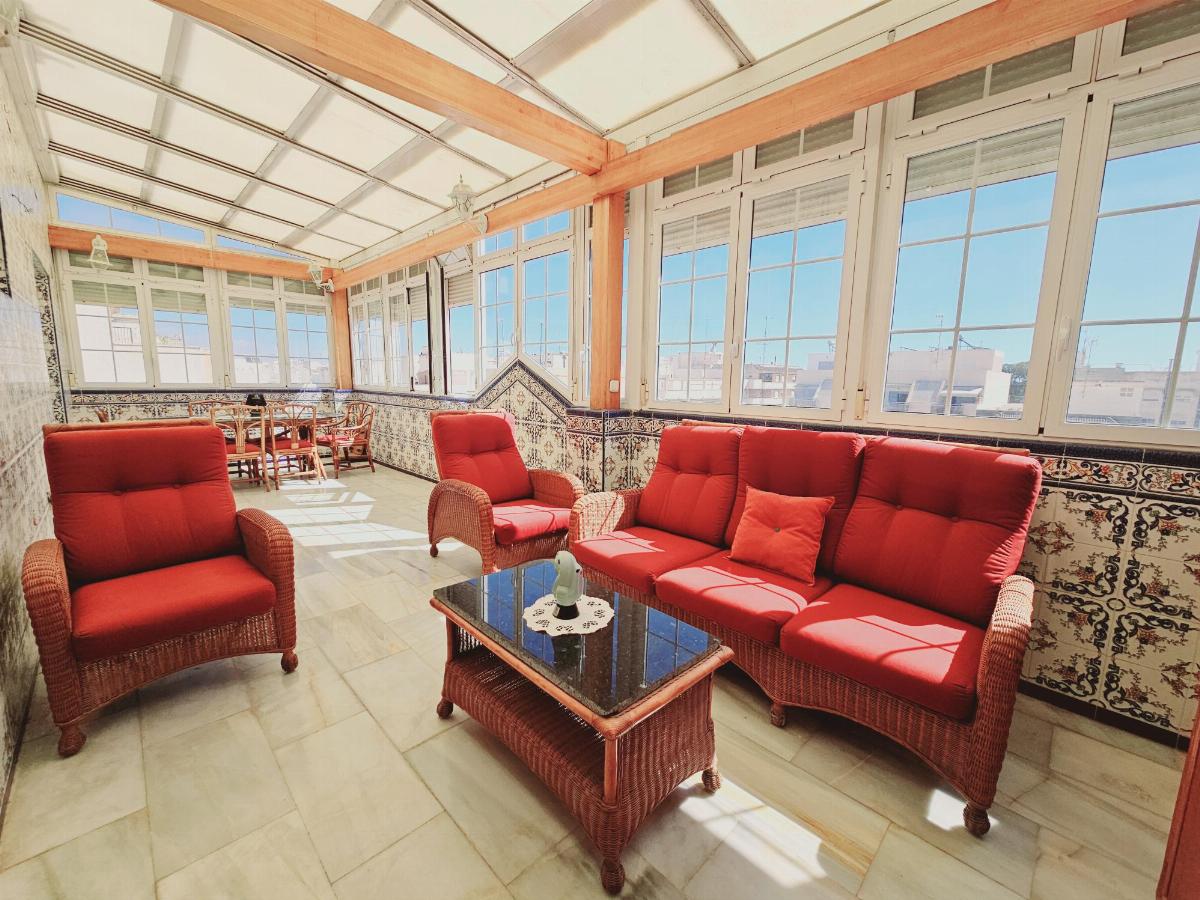 Amplio ático en el centro de Guardamar a tan sólo 400 metros del mar con orientación este, tiene 3 dormitorios, 2 baños, 1 aseo, salón-comedor, cocina independiente con galería, gran terraza acristalada con techo corredizo y también dispone de otra terraza en la planta de arriba en el dormitorio principal.
